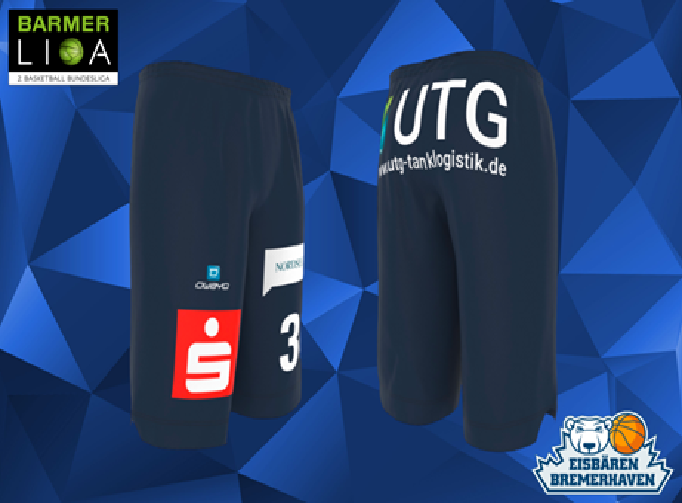Neben dem Logo des Hauptsponsors BLG Logistics auf der Brust kommt Premium-Partner Gewoba auf der Rückseite des Eisbären-Trikots besonders gut zur Geltung. Natürlich dürfen das Logo der Stadt Bremerhaven und der BARMER 2. Basketball Bundesliga nicht fehlen. Die Sponsoren-Logos der Premium-Partner Nordsee-Zeitung, Weser-Elbe Sparkasse sowie UTG Tanklogostik zieren die schlicht gehaltenen Hosen.