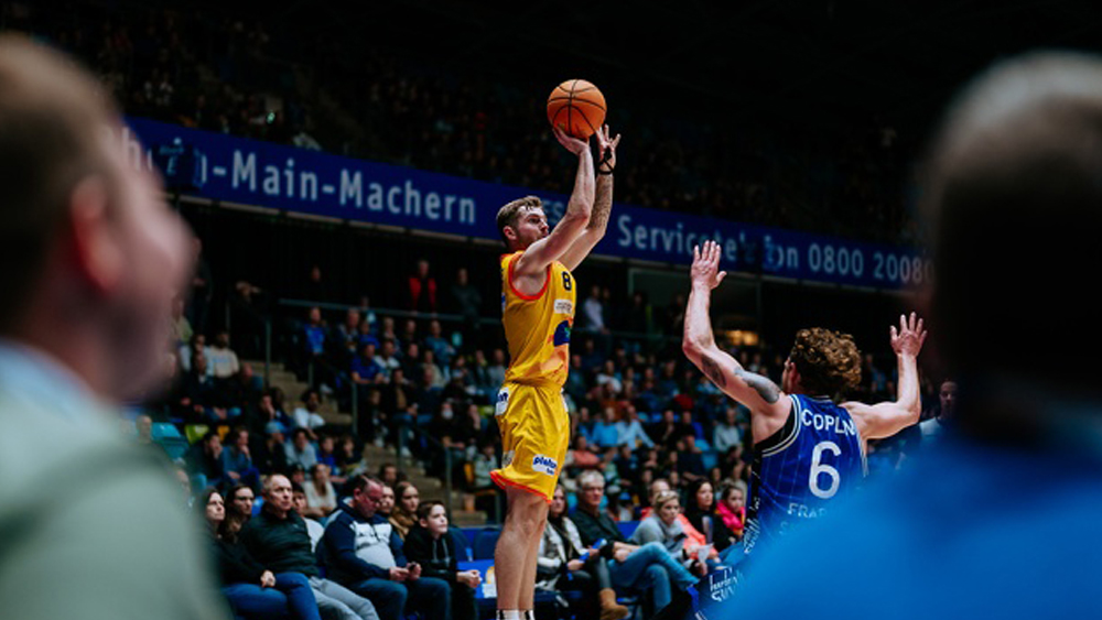 Dass er von jenseits der Dreierlinie regelrecht heißlaufen konnte, stellte er unter anderem mit fünf erfolgreichen Distanztreffern gegen Bayreuth und sechs von „Downtown“ eingenetzten Würfen gegen Frankfurt eindrucksvoll unter Beweis.