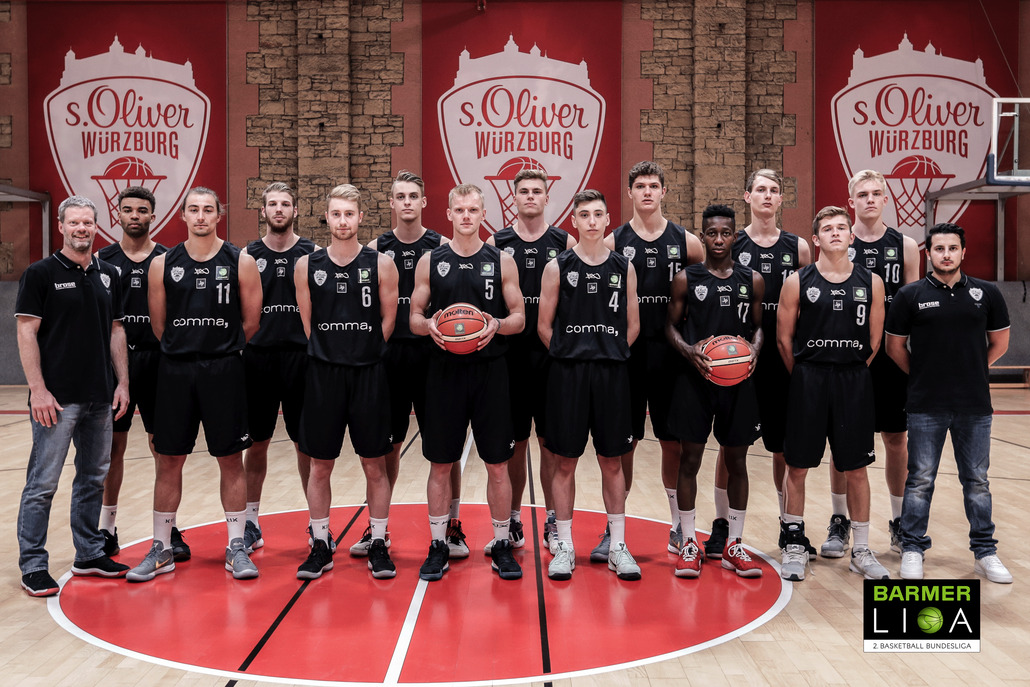 TG s.Oliver Würzburg - Saison 2018/2019 - im Bild von links nach rechts: Headcoach Eric Detlev, Badu Buck, Kapitän Julian Albus, Dexter Sienko, Philipp Hadenfeldt, Michael Javernick, Lennart Stechmann, Jonas Weitzel, Julius Böhmer, Fynn Fischer, John Saigge, Tilman Buschbeck, Marc Kunz, Lukas Zerner, Co-Trainer Sepehr Tarrah. Es fehlen: Nils Leonhardt und Tim Eisenberger.. Foto: Viktor Meshko.